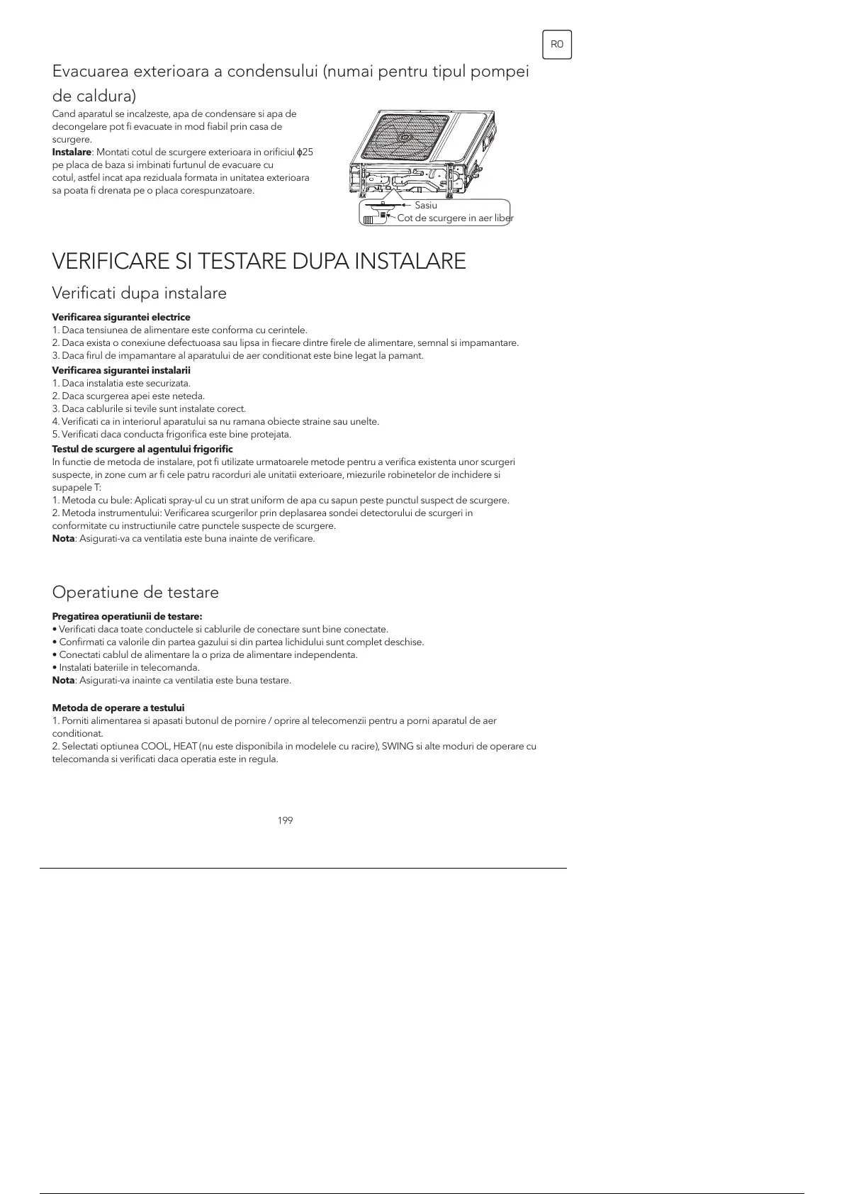 cotul, astfel incat apa reziduala formata in unitatea exterioara