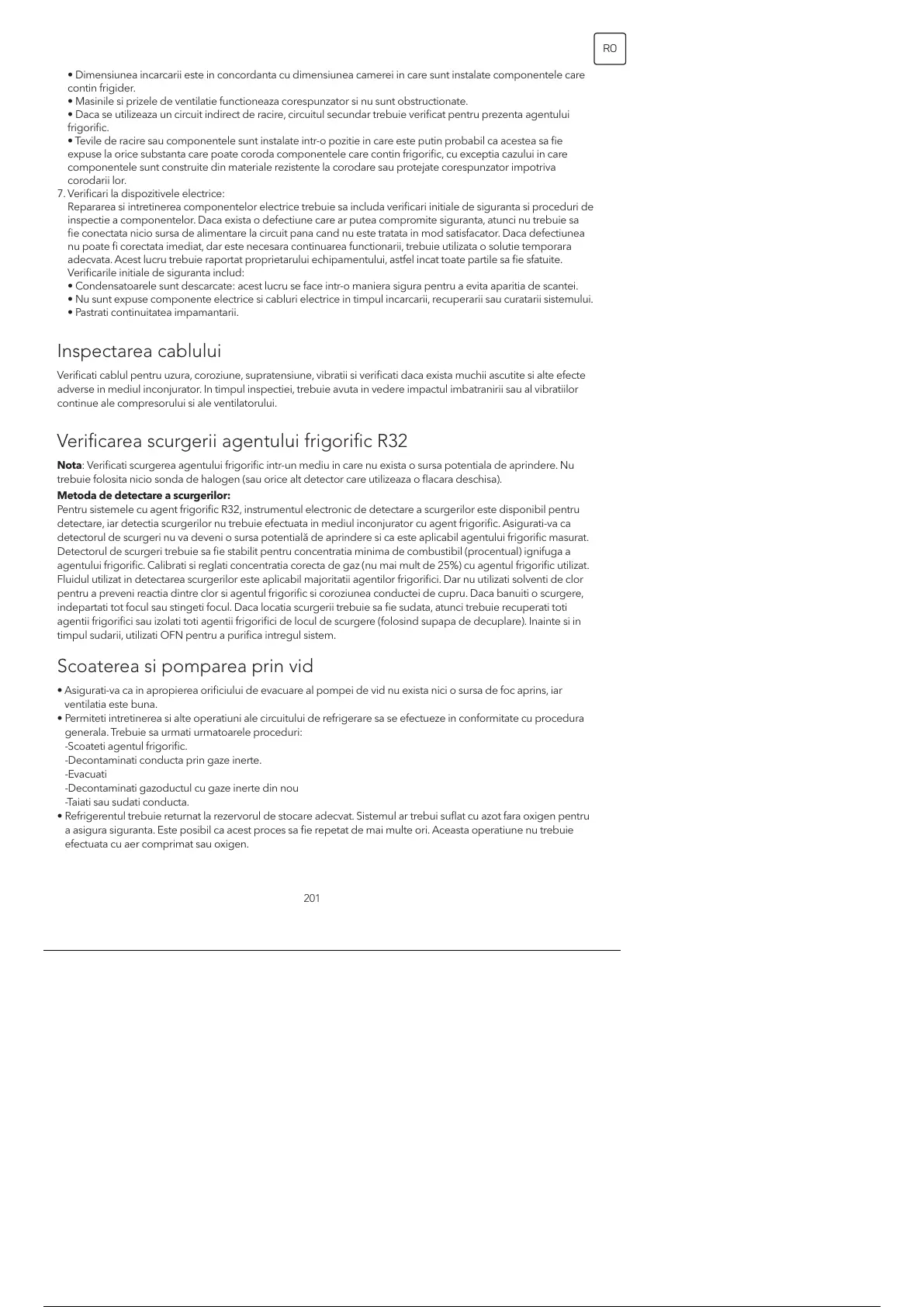 • Permiteti intretinerea si alte operatiuni ale circuitului de refrigerare sa se efectueze in conformitate cu procedura