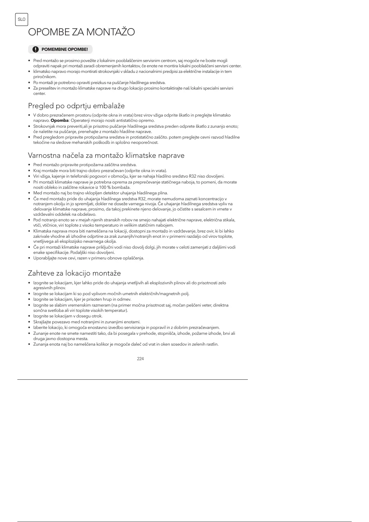 • Za preselitev in montažo klimatske naprave na drugo lokacijo prosimo kontaktirajte naš lokalni specialni servisni