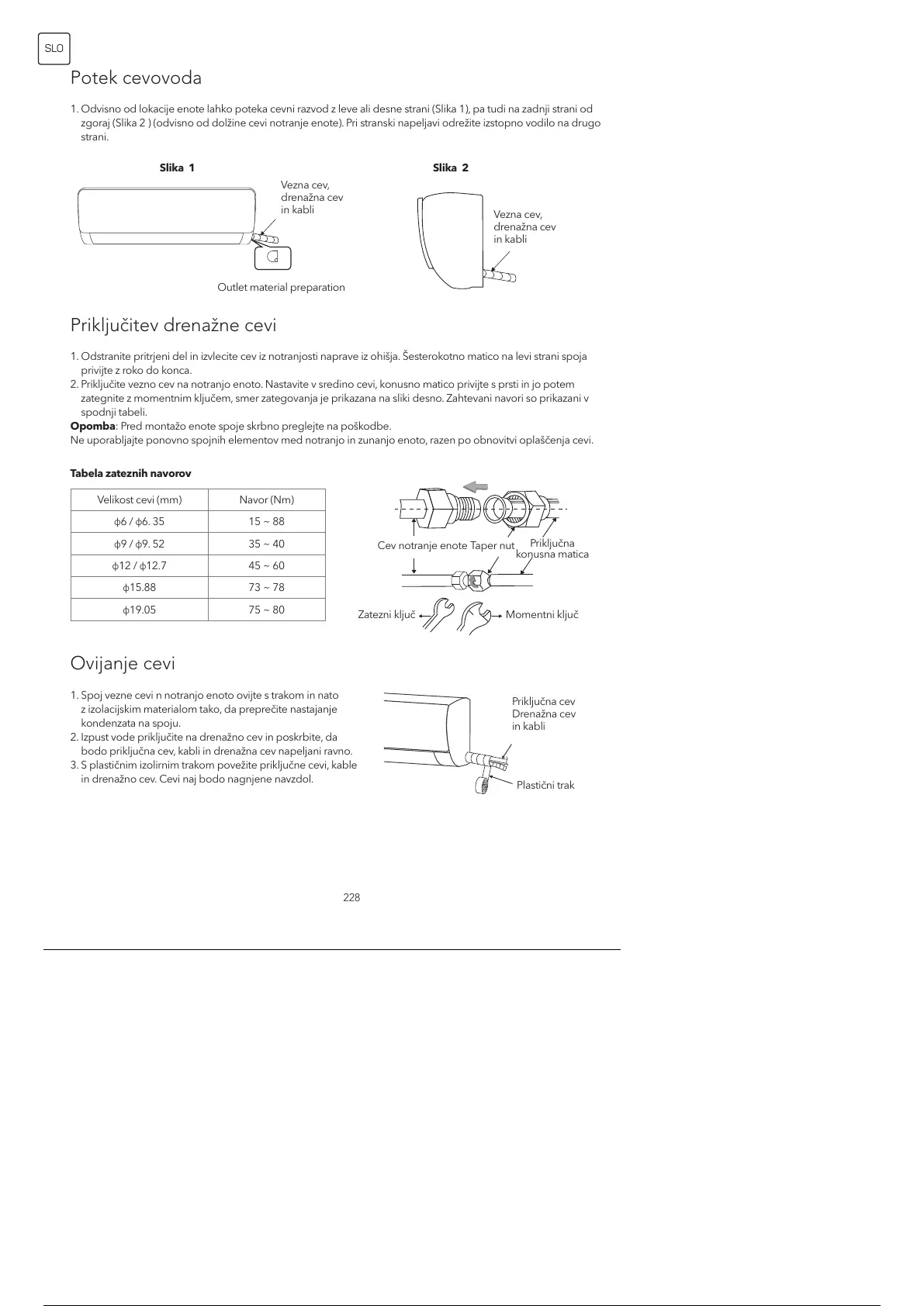 Ne uporabljajte ponovno spojnih elementov med notranjo in zunanjo enoto, razen po obnovitvi oplaščenja cevi.