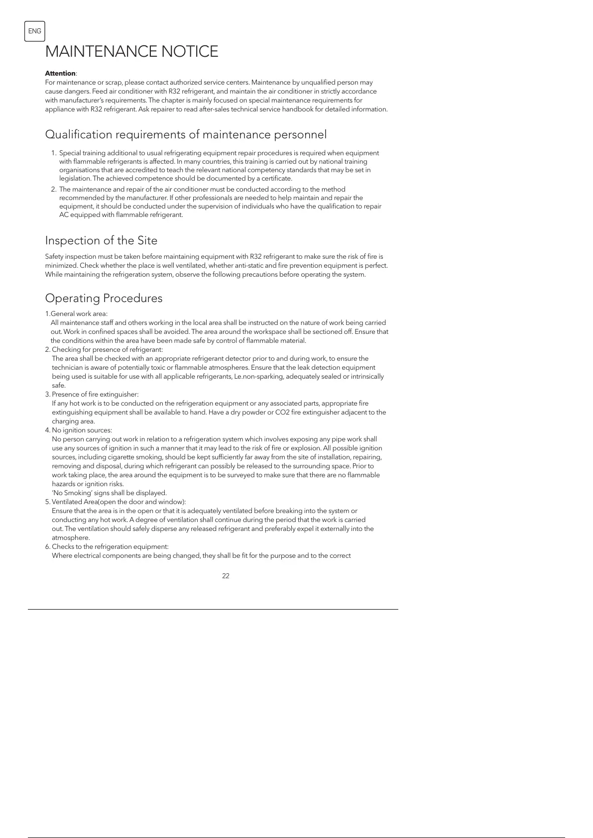 cause dangers. Feed air conditioner with R32 refrigerant, and maintain the air conditioner in strictly accordance