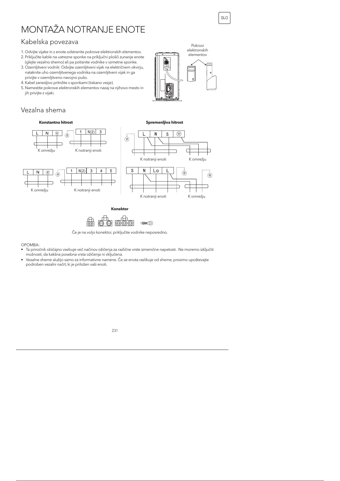 • Vezalne sheme služijo samo za informativne namene. Če se enota razlikuje od sheme, prosimo upoštevajte