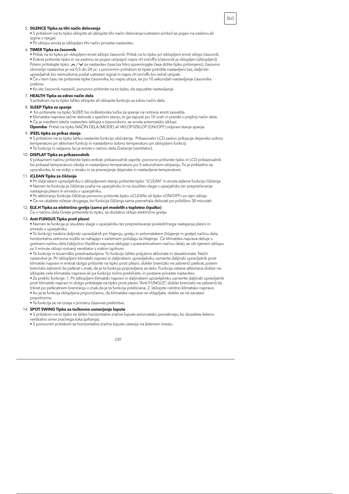 • Klimatska naprava začne delovati v spečem stanju, ki ga zapusti po 10 urah in preide v prejšnji način dela.