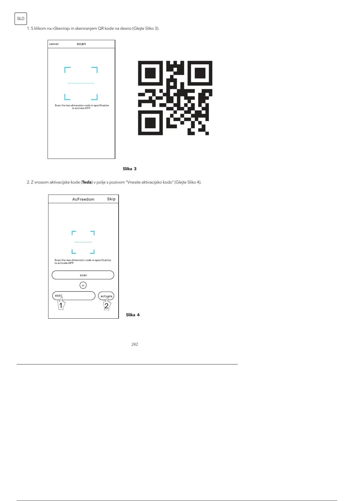 1. S klikom na »Skeniraj« in skeniranjem QR kode na desno (Glejte Sliko 3).