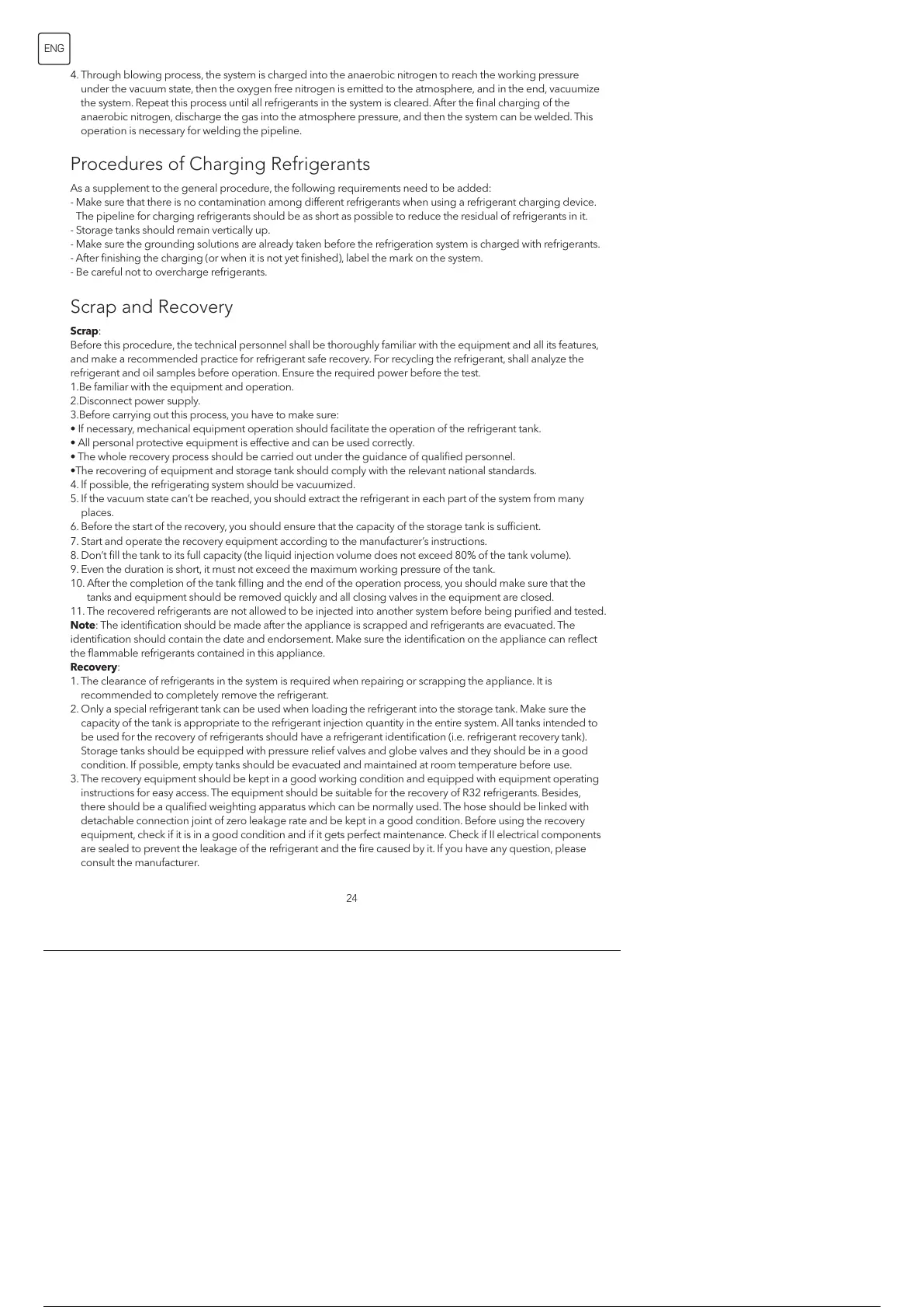 instructions for easy access. The equipment should be suitable for the recovery of R32 refrigerants. Besides,