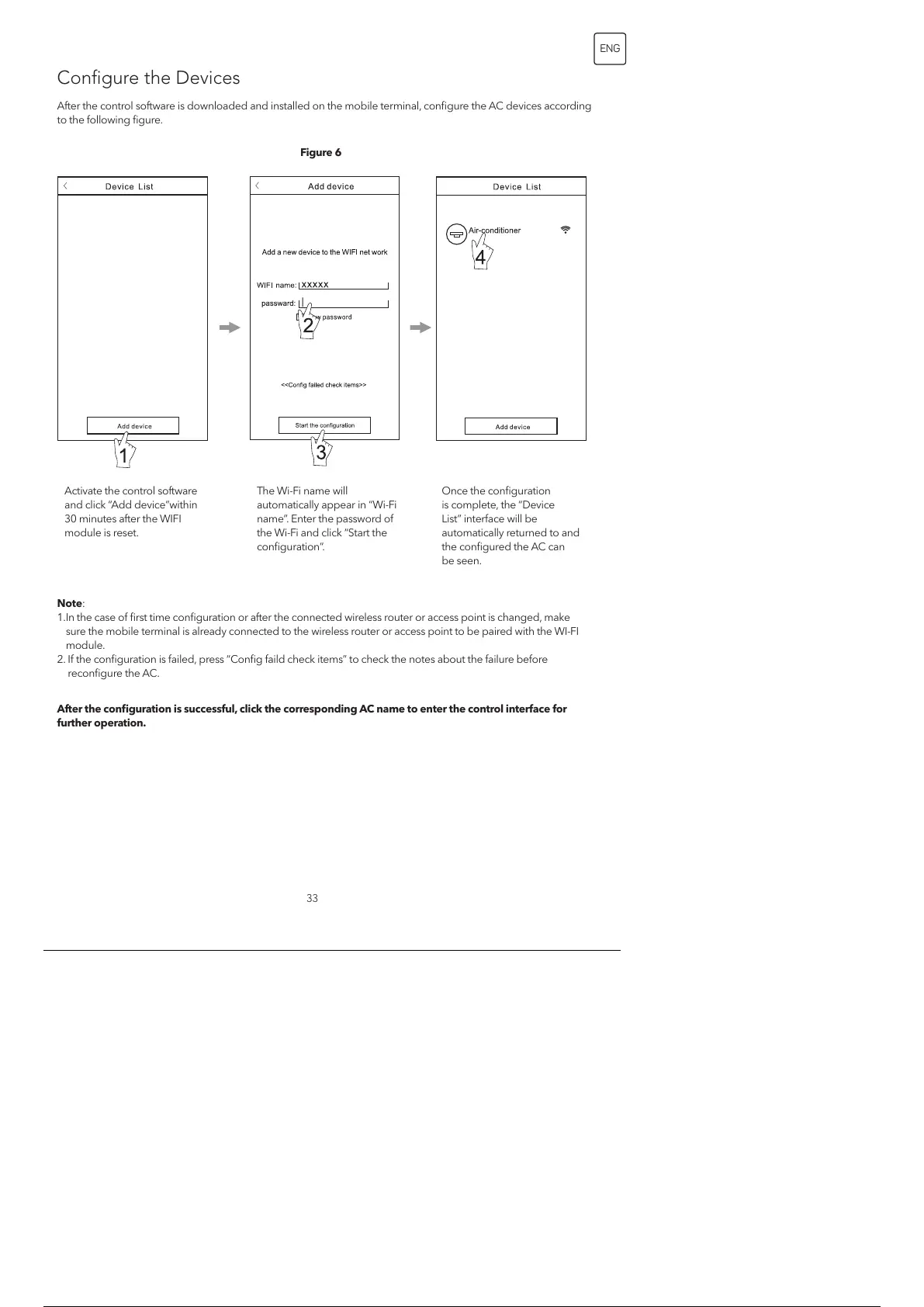 After the control software is downloaded and installed on the mobile terminal, configure the AC devices according