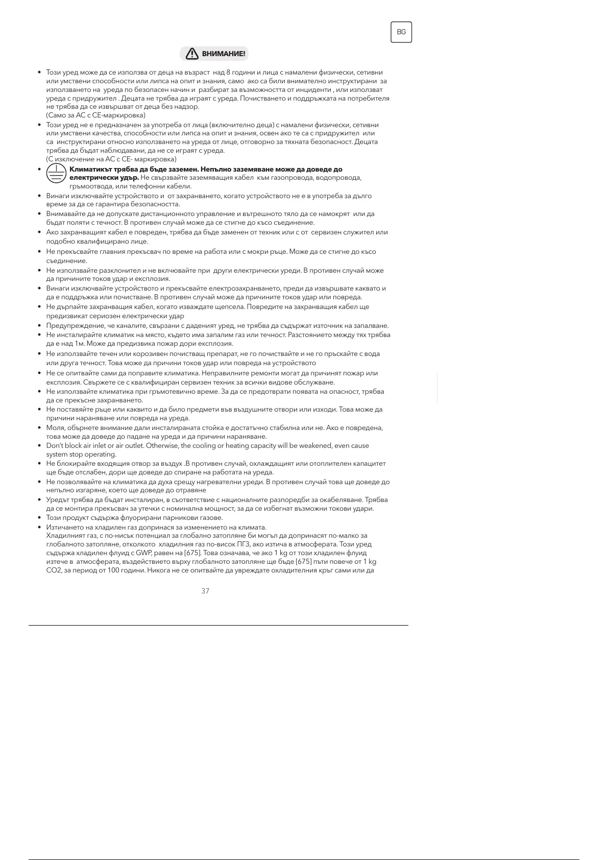 • Този продукт съдържа флуорирани парникови газове.