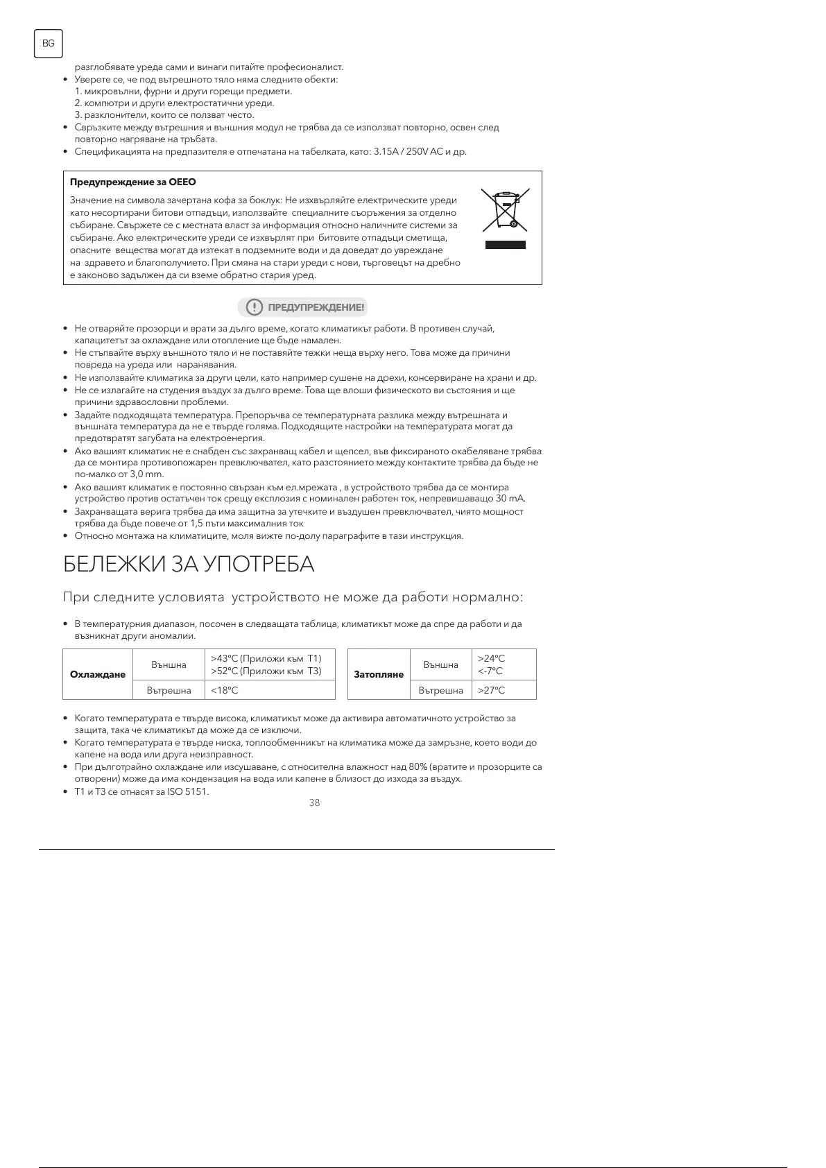 • Относно монтажа на климатиците, моля вижте по-долу параграфите в тази инструкция.