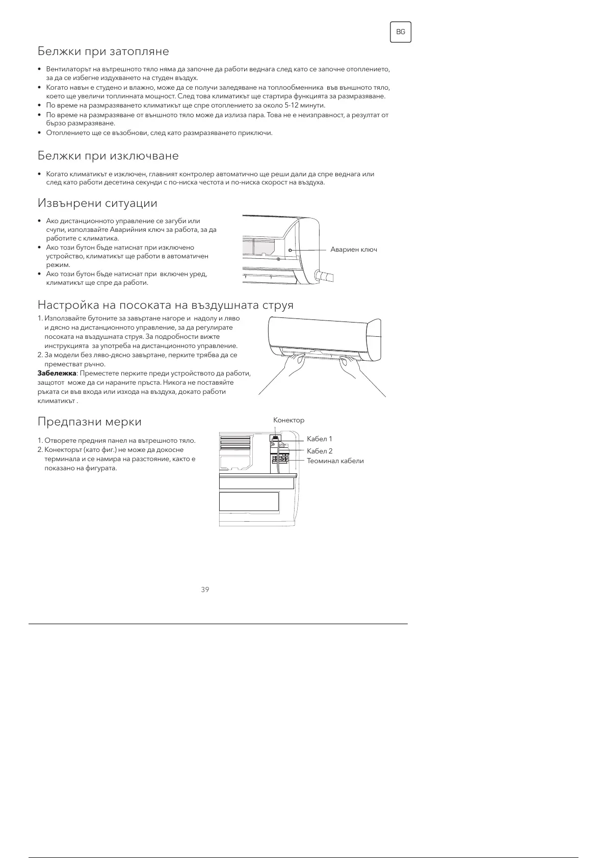 • Когато навън е студено и влажно, може да се получи заледяване на топлообменника във външното тяло,