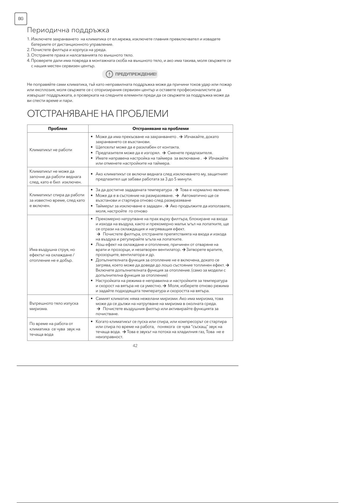 • Самият климатик няма нежелани миризми. Ако има миризма, това