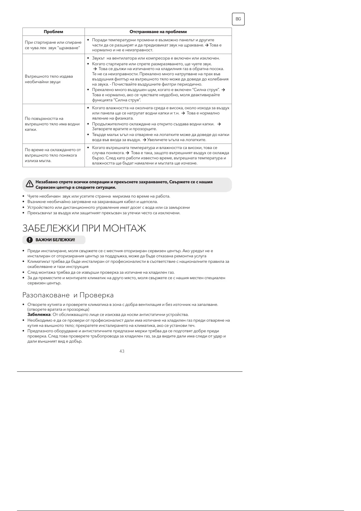 • След монтажа трябва да се извърши проверка за изтичане на хладилен газ.