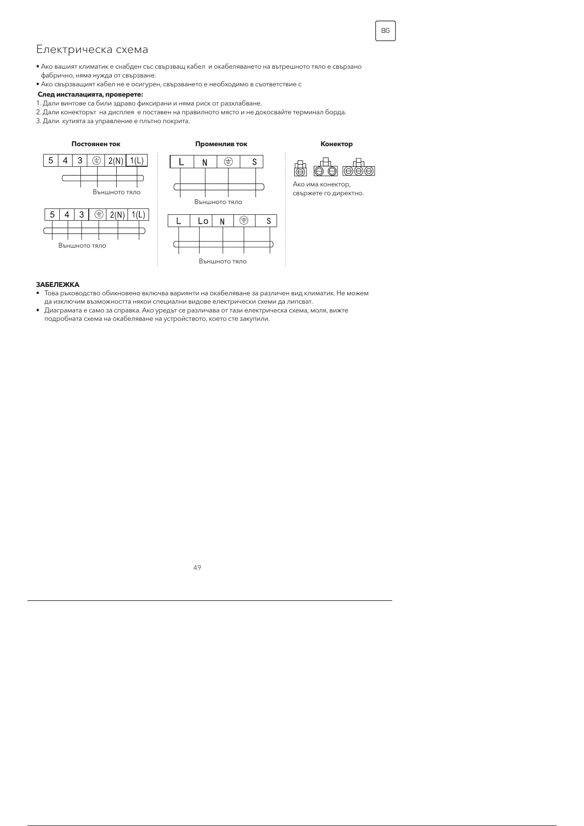 • Ако вашият климатик е снабден със свързващ кабел и окабеляването на вътрешното тяло е свързано