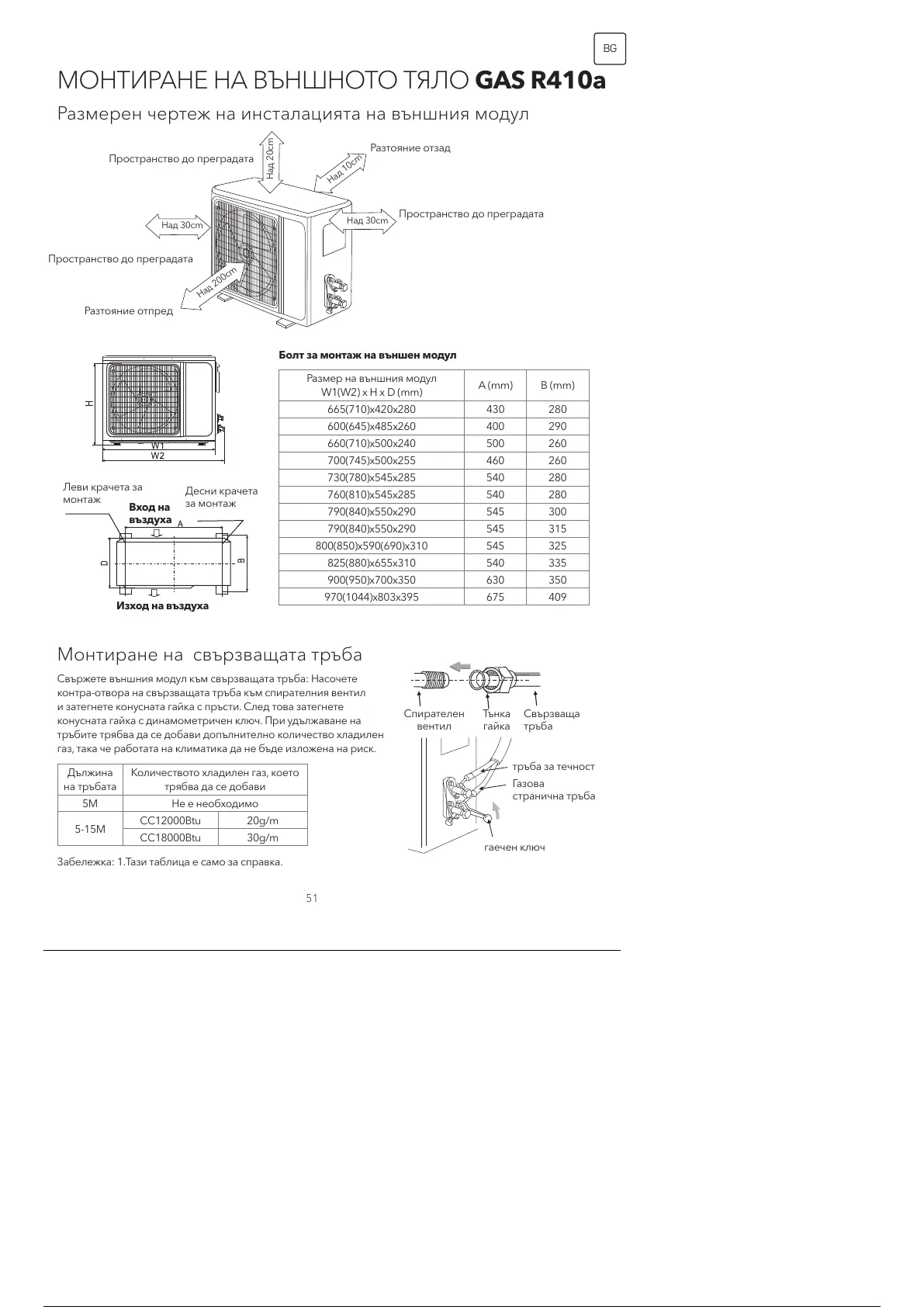 МОНТИРАНЕ НА ВЪНШНОТО ТЯЛО GAS R410a