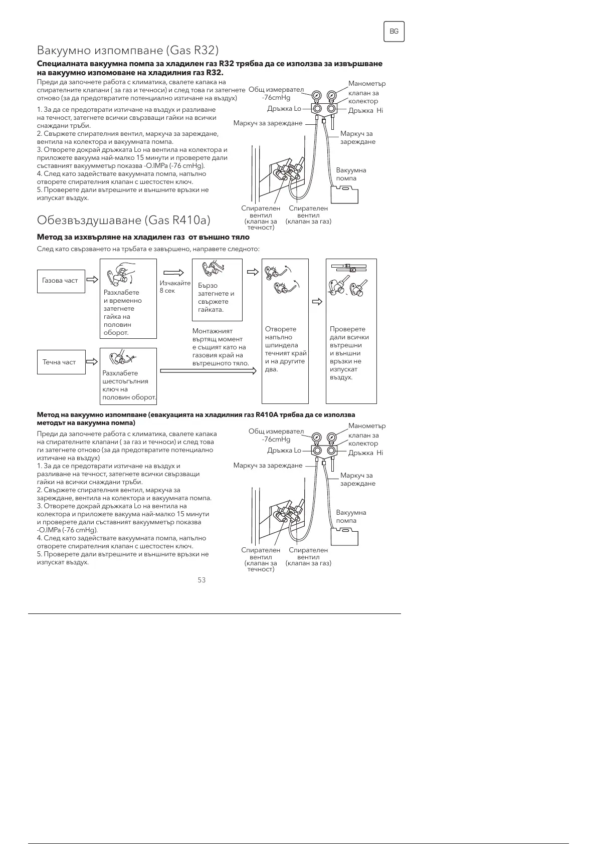 Метод на вакуумно изпомпване (евакуацията на хладилния газ R410A трябва да се използва