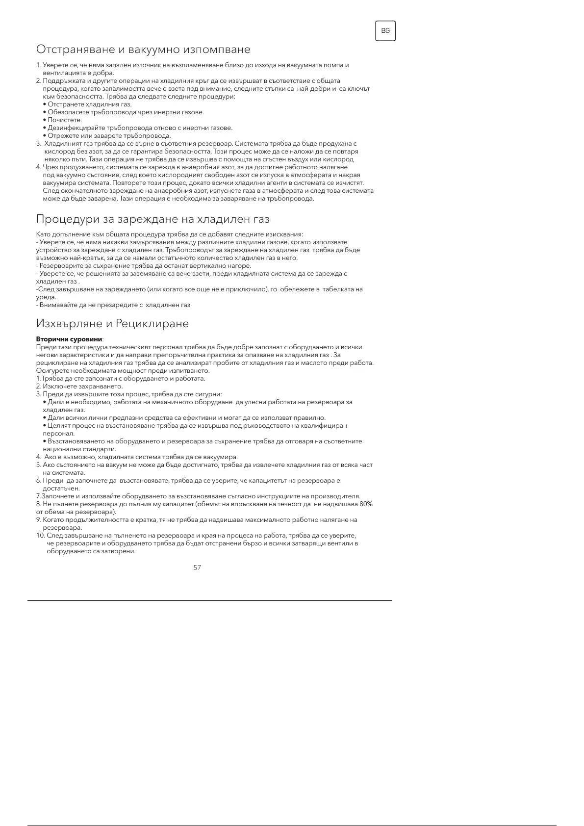 4. Ако е възможно, хладилната система трябва да се вакуумира.