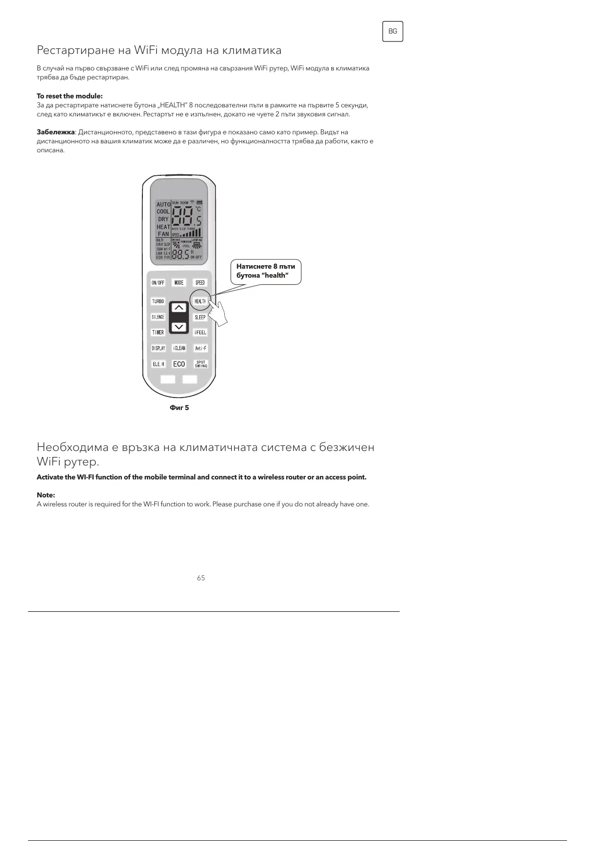 За да рестартирате натиснете бутона „HEALTH” 8 последователни пъти в рамките на първите 5 секунди,