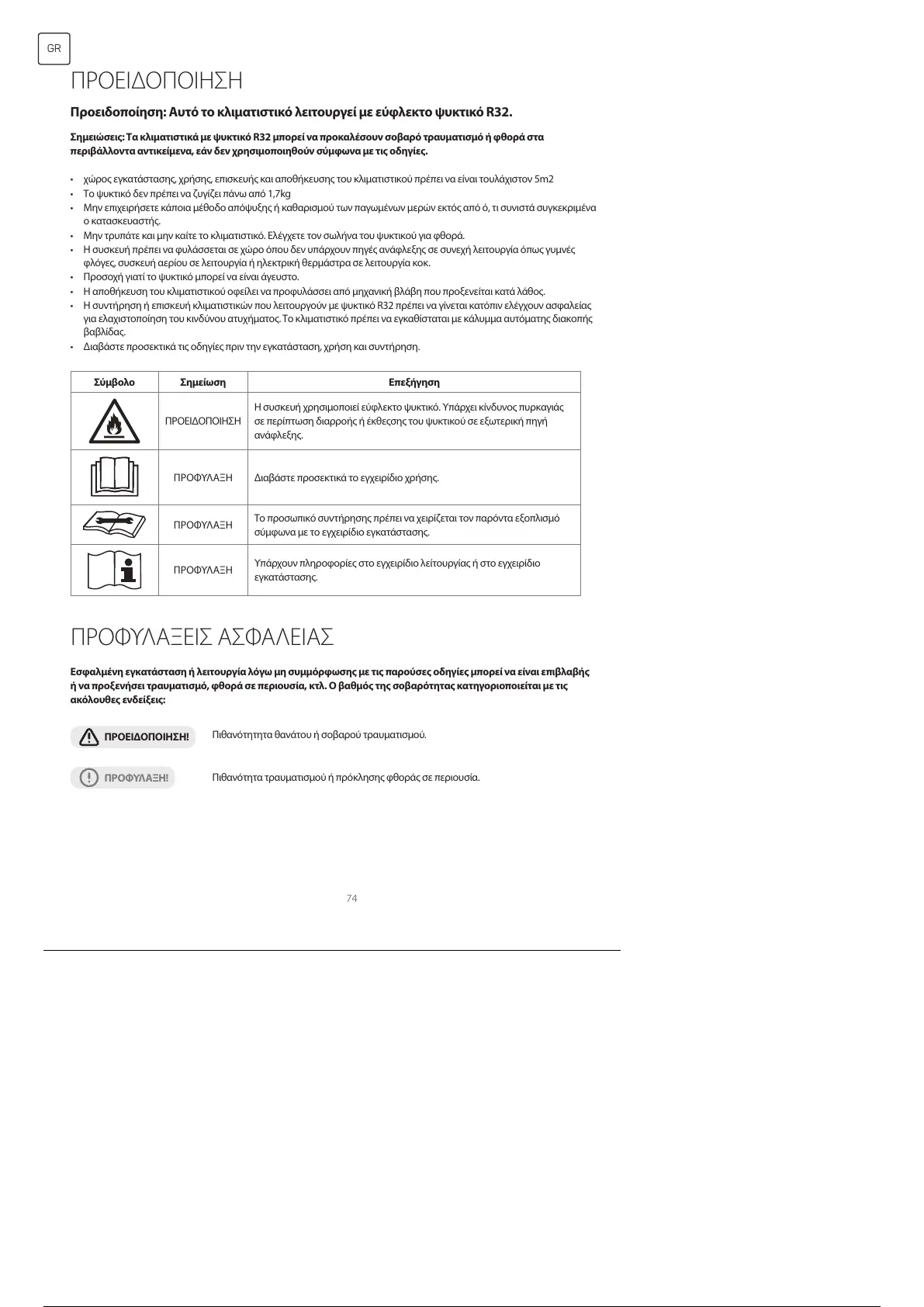 Σημειώσεις: Τα κλιματιστικά με ψυκτικό R32 μπορεί να προκαλέσουν σοβαρό τραυματισμό ή φθορά στα