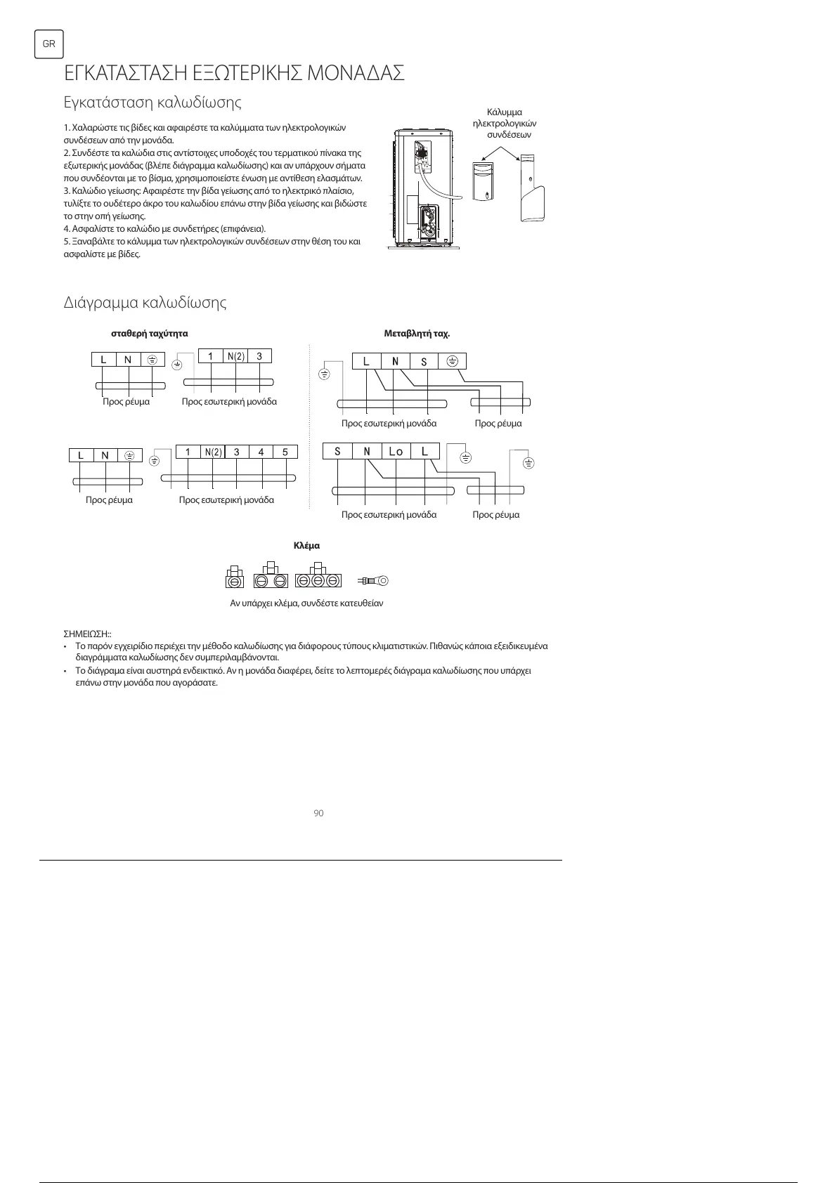 • Το παρόν εγχειρίδιο περιέχει την μέθοδο καλωδίωσης για διάφορους τύπους κλιματιστικών. Πιθανώς κάποια εξειδικευμένα