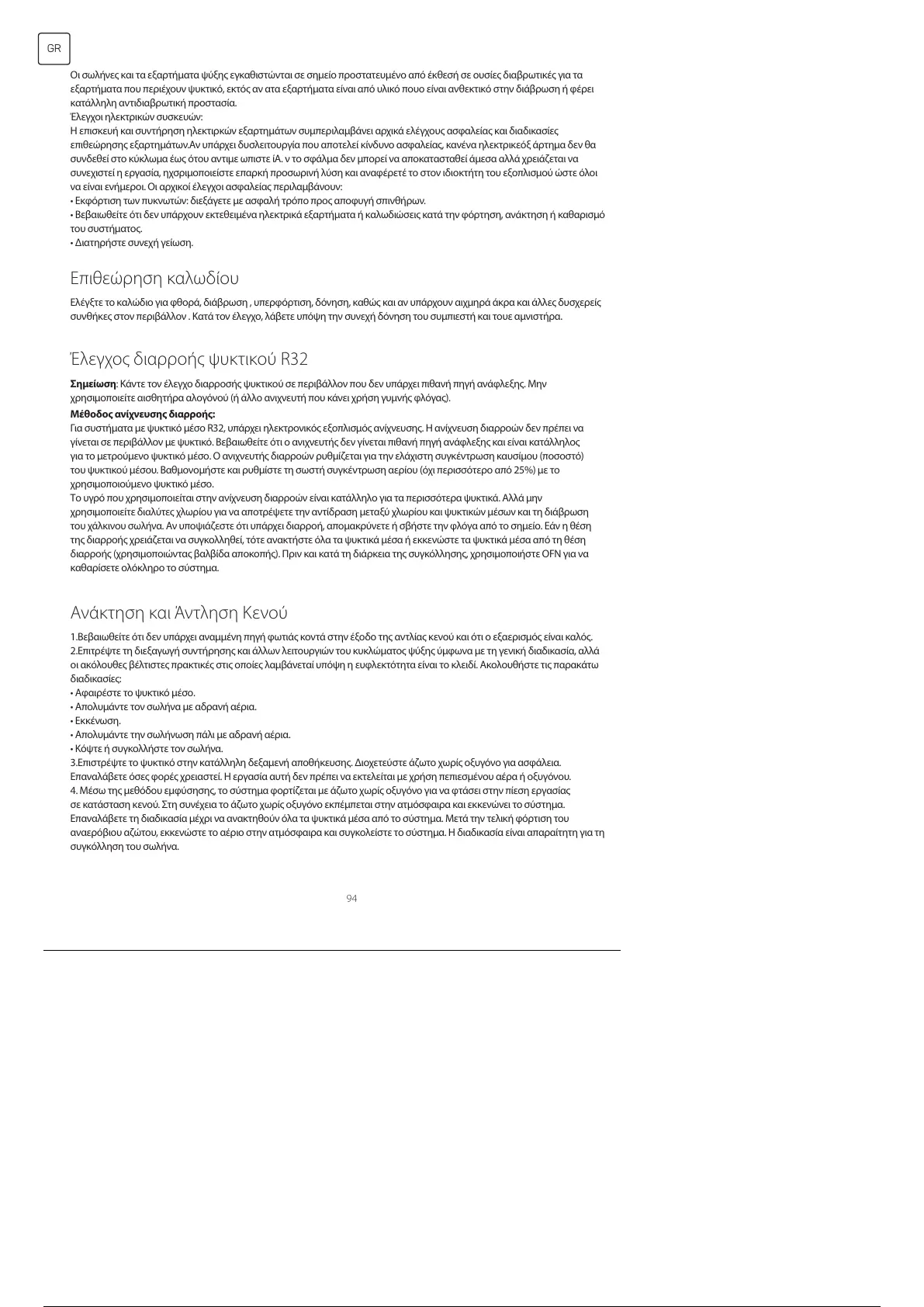 Για συστήματα με ψυκτικό μέσο R32, υπάρχει ηλεκτρονικός εξοπλισμός ανίχνευσης. Η ανίχνευση διαρροών δεν πρέπει να