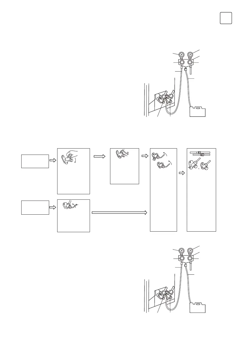 Метод на вакуумно изпомпване (евакуацията на хладилния газ R410A трябва да се използва