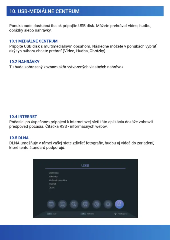 Pre túto funkciu je vyžadované pripojenie USB záznamového zariadenia - disku.