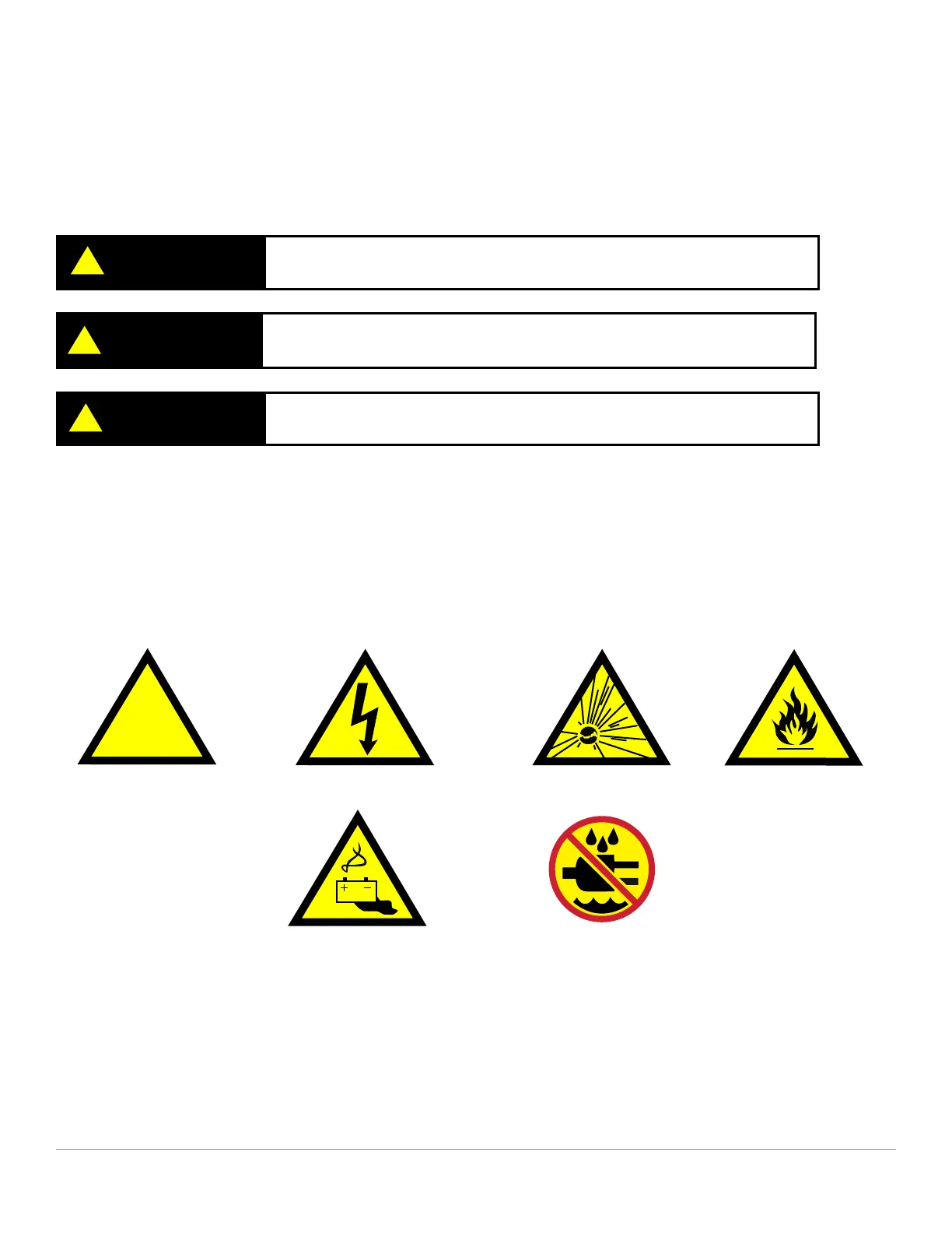 key word that indicates the level of hazard and a triangular icon that indicates the speci c type of hazard.