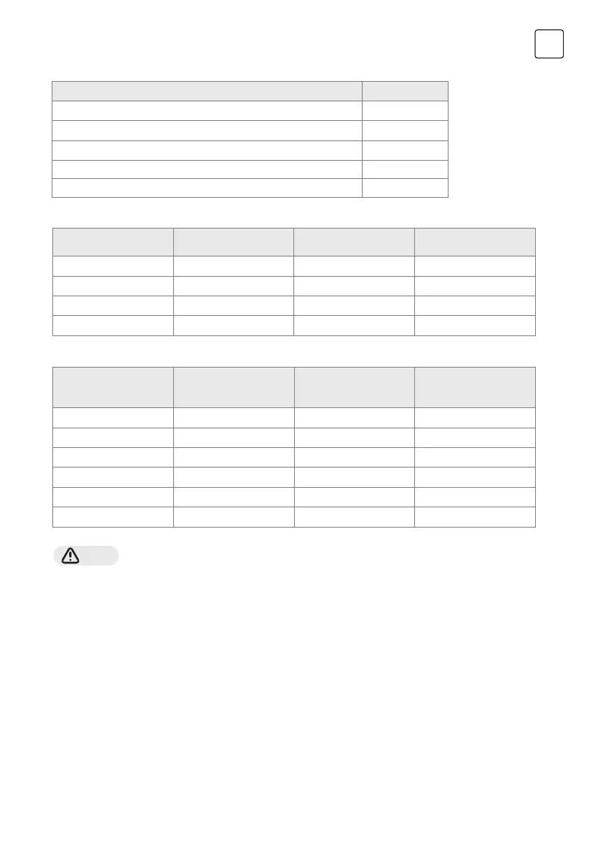Acest tabel este doar cu titlu de referință, instalația trebuie să îndeplinească cerințele legilor și