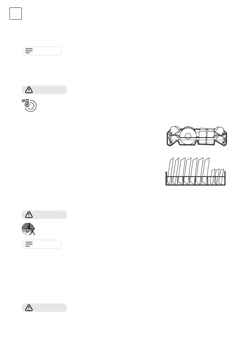 • Dugi i / ili oštri komadi pribora za jelo, poput noževa za siječenje, moraju se postavljati u gornju korpu, u