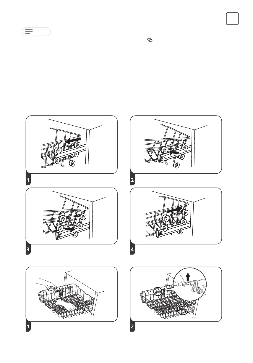 To adjust the height of the upper rack, follow these steps: