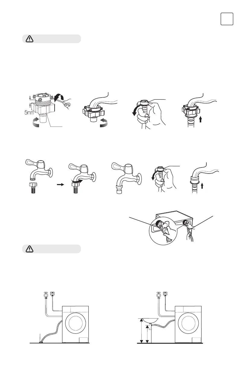 • Кај модели опремени со вентил за топла вода, доводното црево за топла вода поврзете го со славина