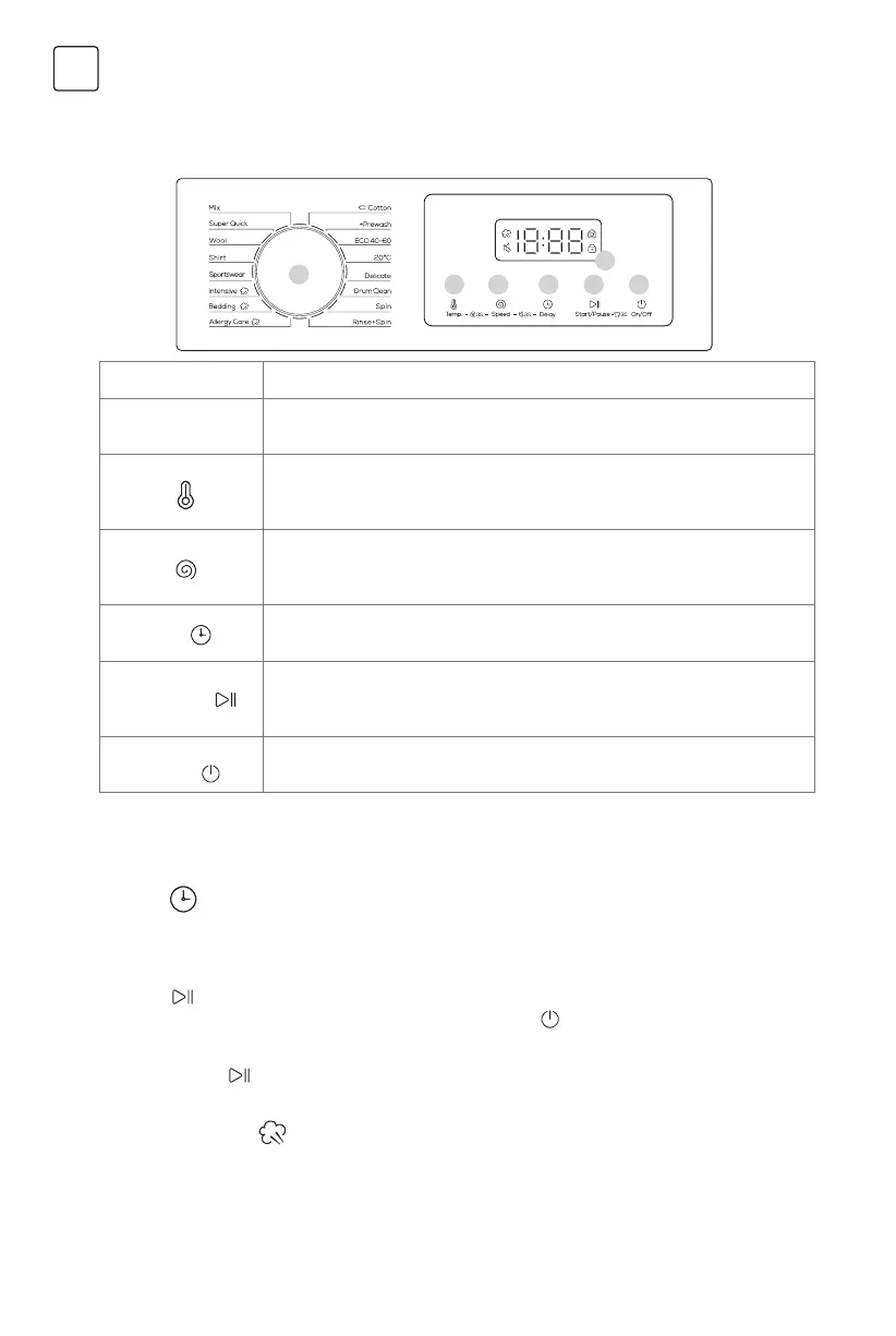 1. Birač ciklusa Okrenite kotačić za odabir ciklusa.