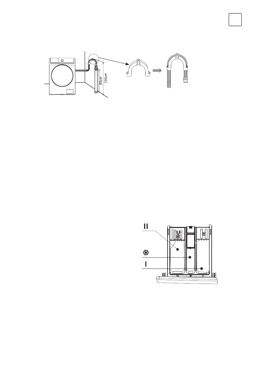 • Ha szükség van a víztömlő vagy a lefolyócső meghosszabbítására, akkor azt a helyi vevőszolgálati