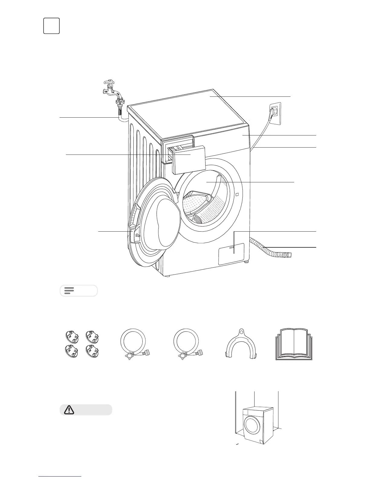 Tesla WF81490M - Installation Procedures; Washing Machine Product Description; Included Accessories; Installation Area Requirements