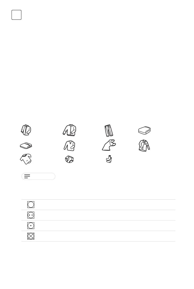 2. Az egyenletes szárítási eredmény érdekében a ruhaneműket az anyag típusa és a szárítási program