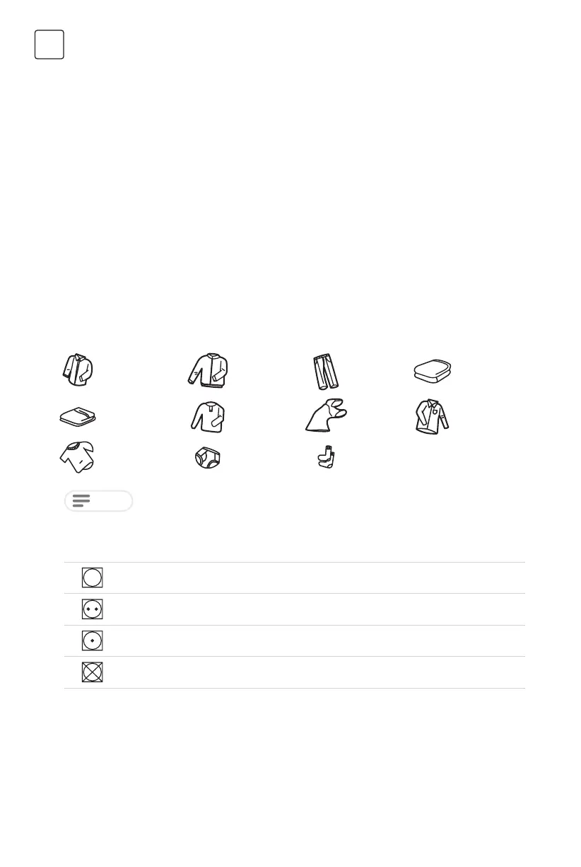 Numai rufe uscate potrivite pentru uscare cu rufe. Luați în considerare etichetele de îngrijire a rufelor: