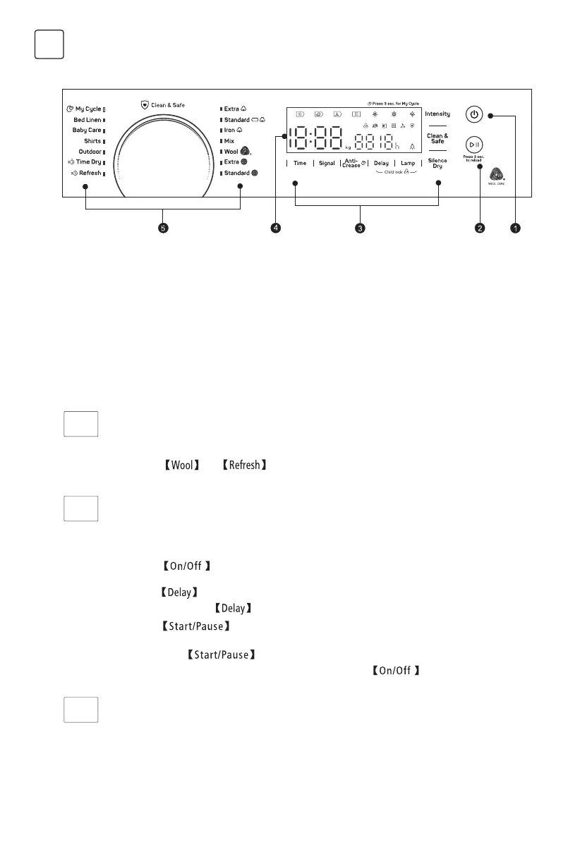 Press the button to start or pause the drying