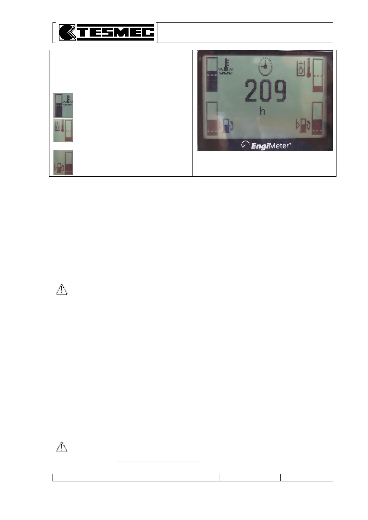 The lever (table 1, pos. 4) must be lowered for a few seconds after the engine start-up.