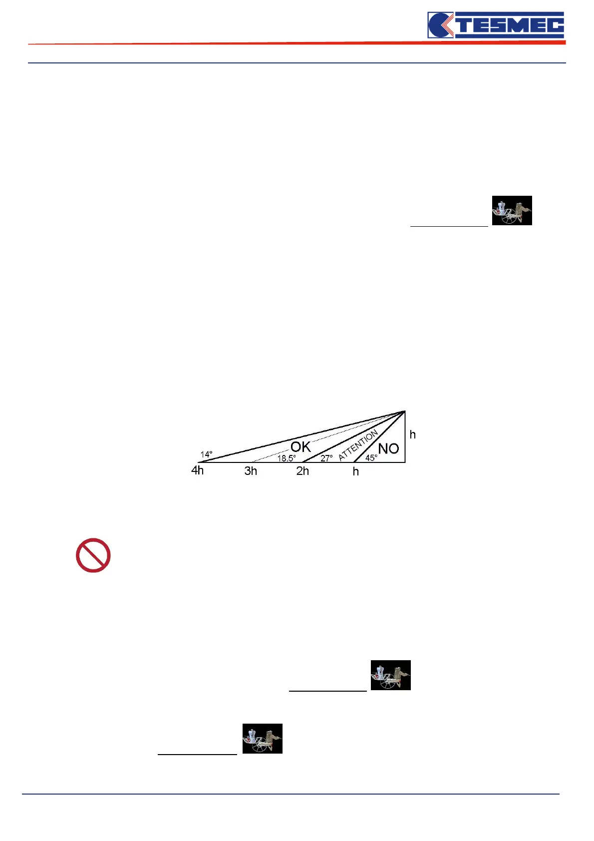 It is possible to use the machine at a distance from the pole included between 1 and 2 times the height of