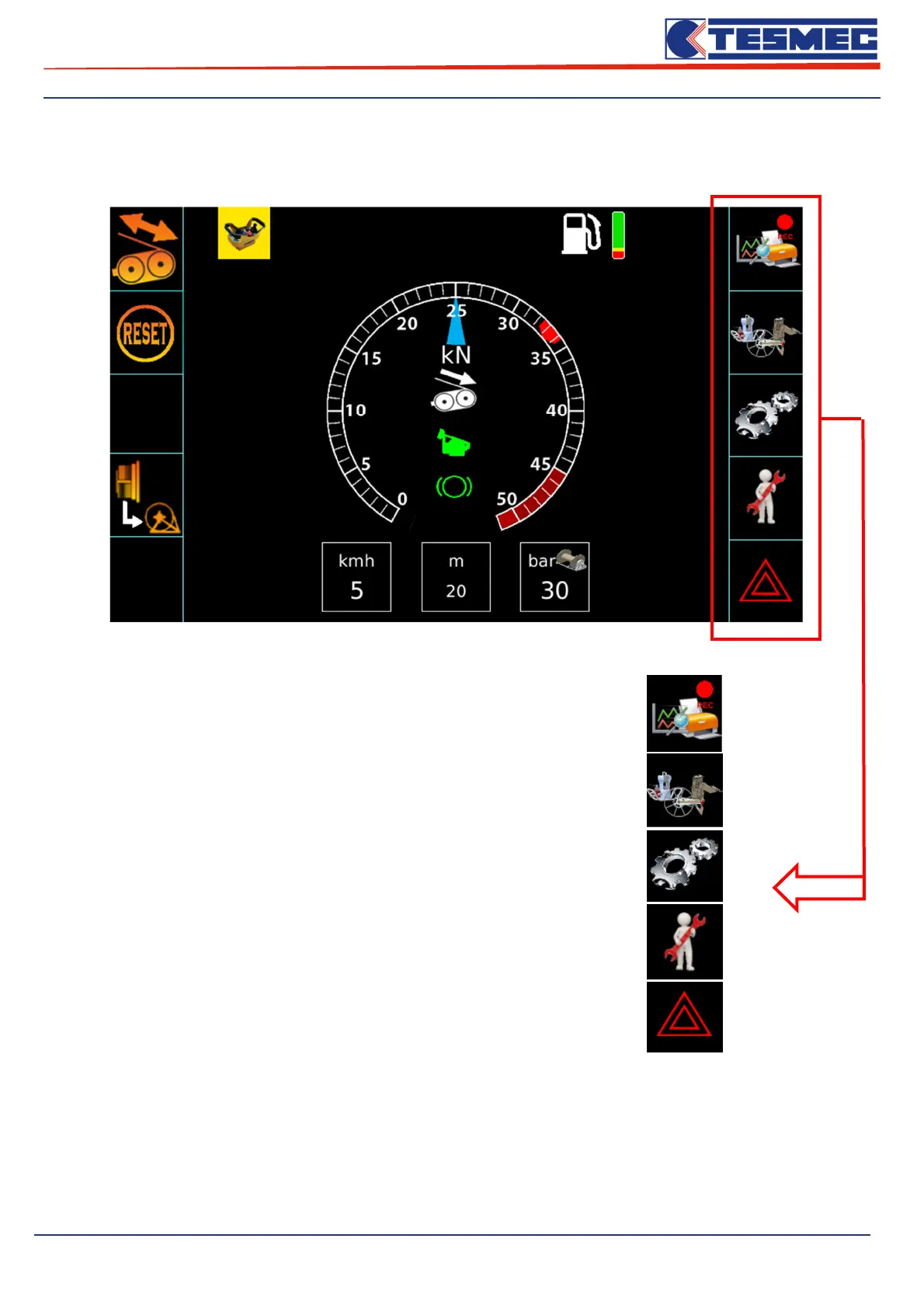 On the right side of the main work screen, lists the available machine menu.