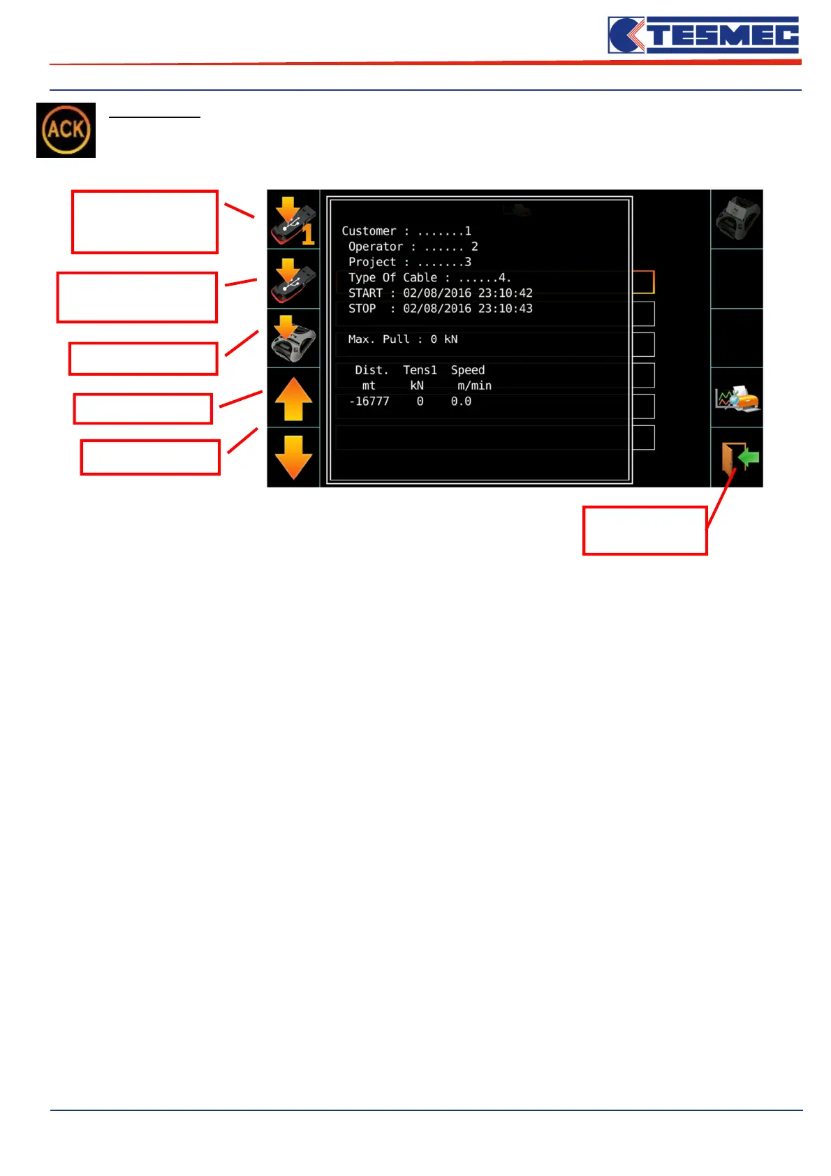 Pressing the button “ACK” it’s possible to see the recorded data during the stringing operations: