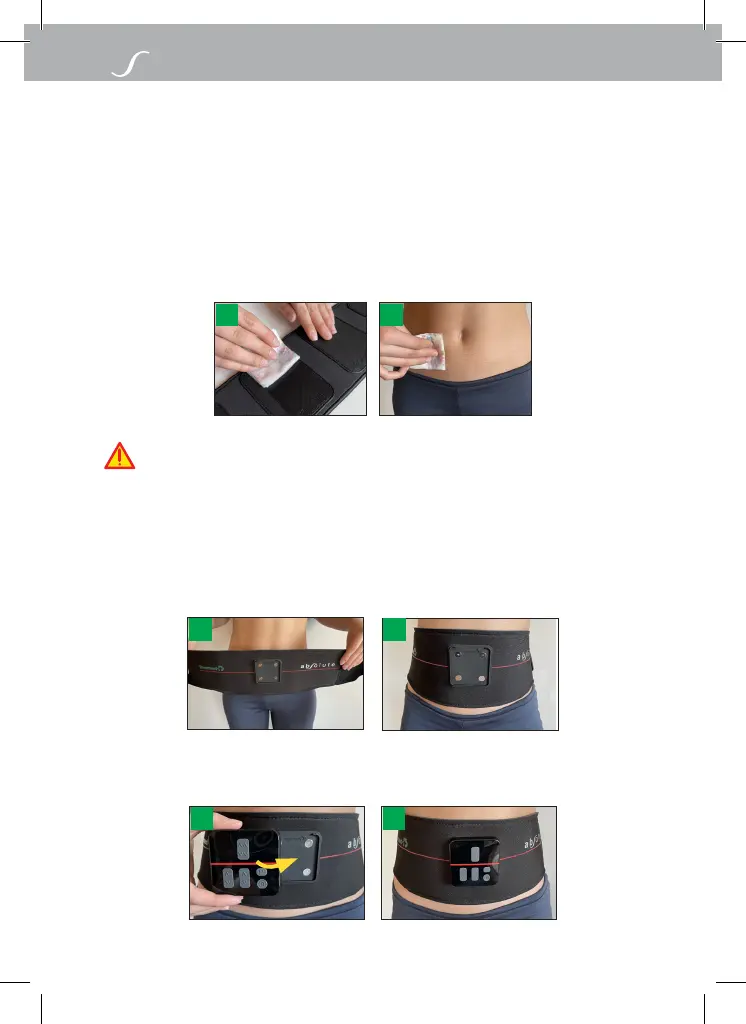 Fasten the belt over the abdomen, making sure that the conductive plates are in