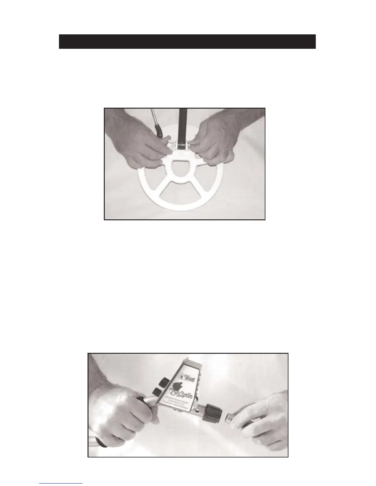 2) Insert the pole tip between the mounting ears of the searchcoil and