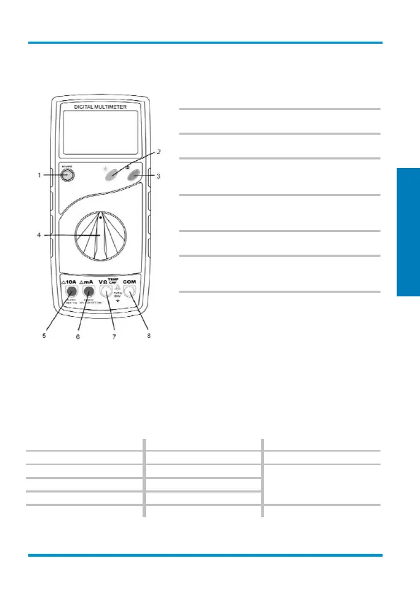 Use the selector switch to set the appropriate range. Insert the black test lead into the ‘COM’