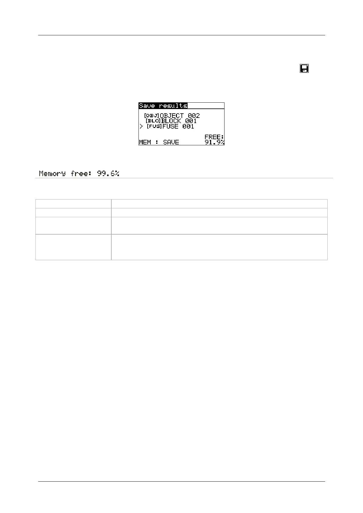 is displayed in the information field). By pressing the MEM key, the user can store the