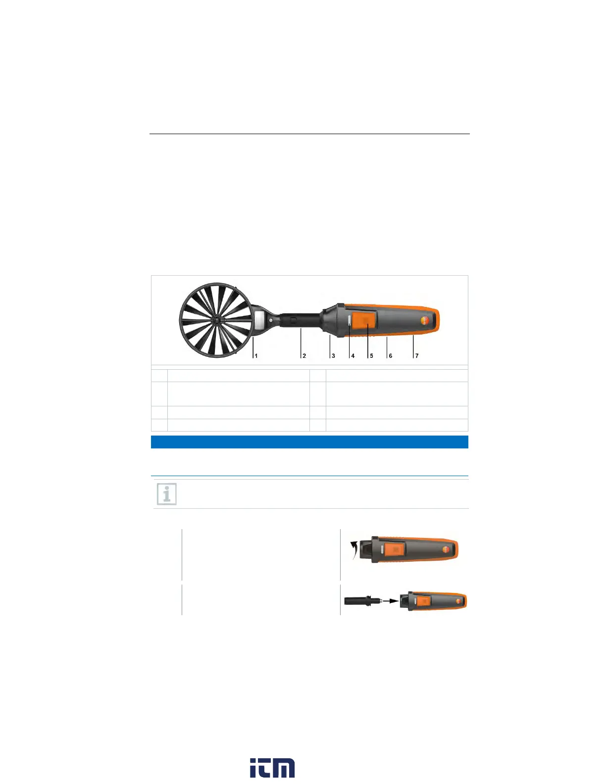 Connect vane probe (Ø 100 mm) to the handle