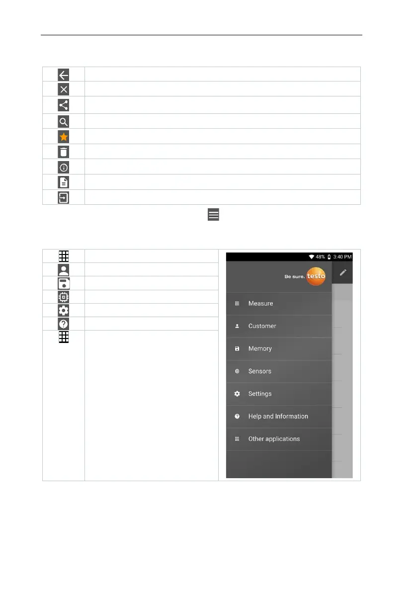 Additional symbols on the user interface of the app (not numbered)