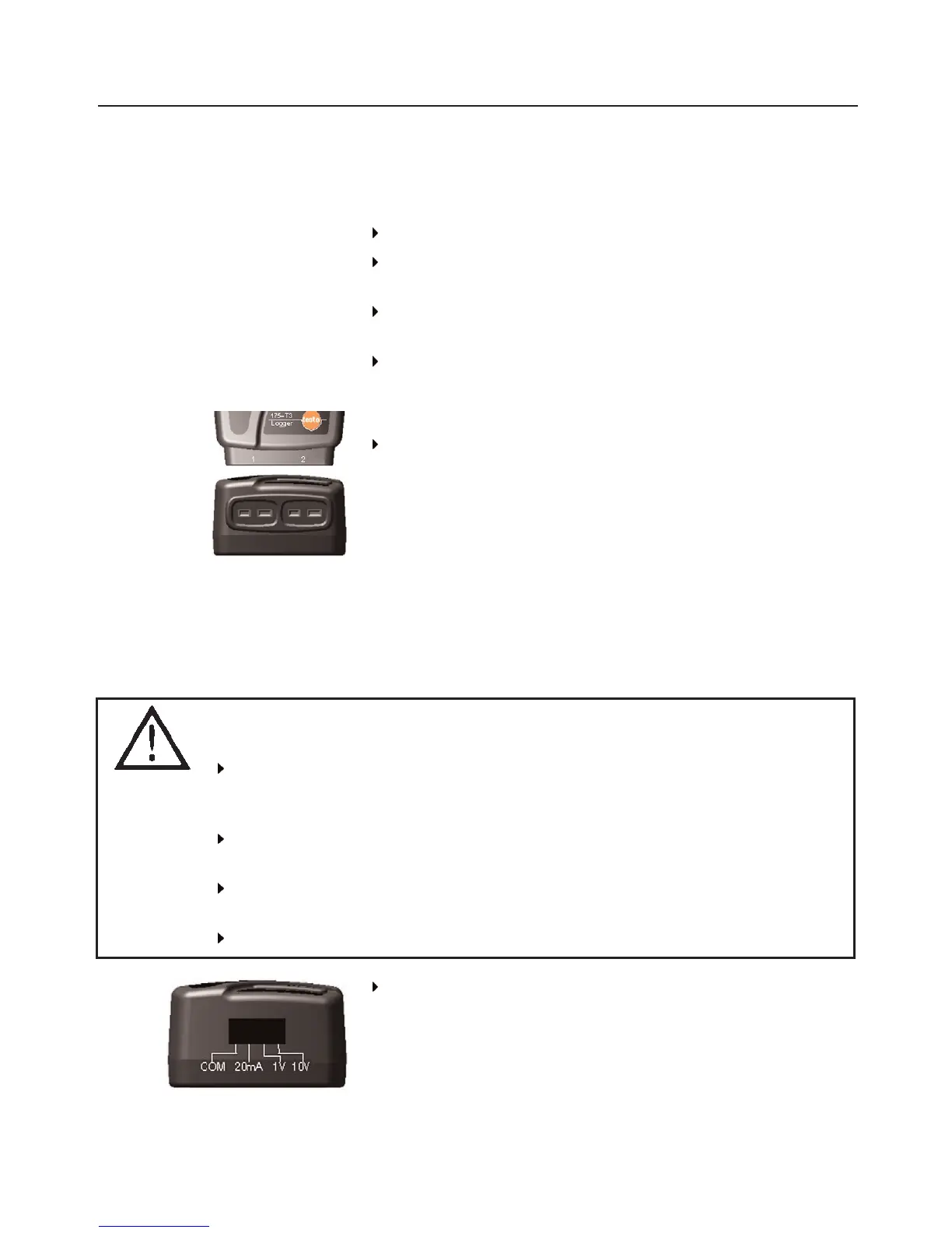 testo 175-S1 and testo 175-S2 data logger should only be connected to electric