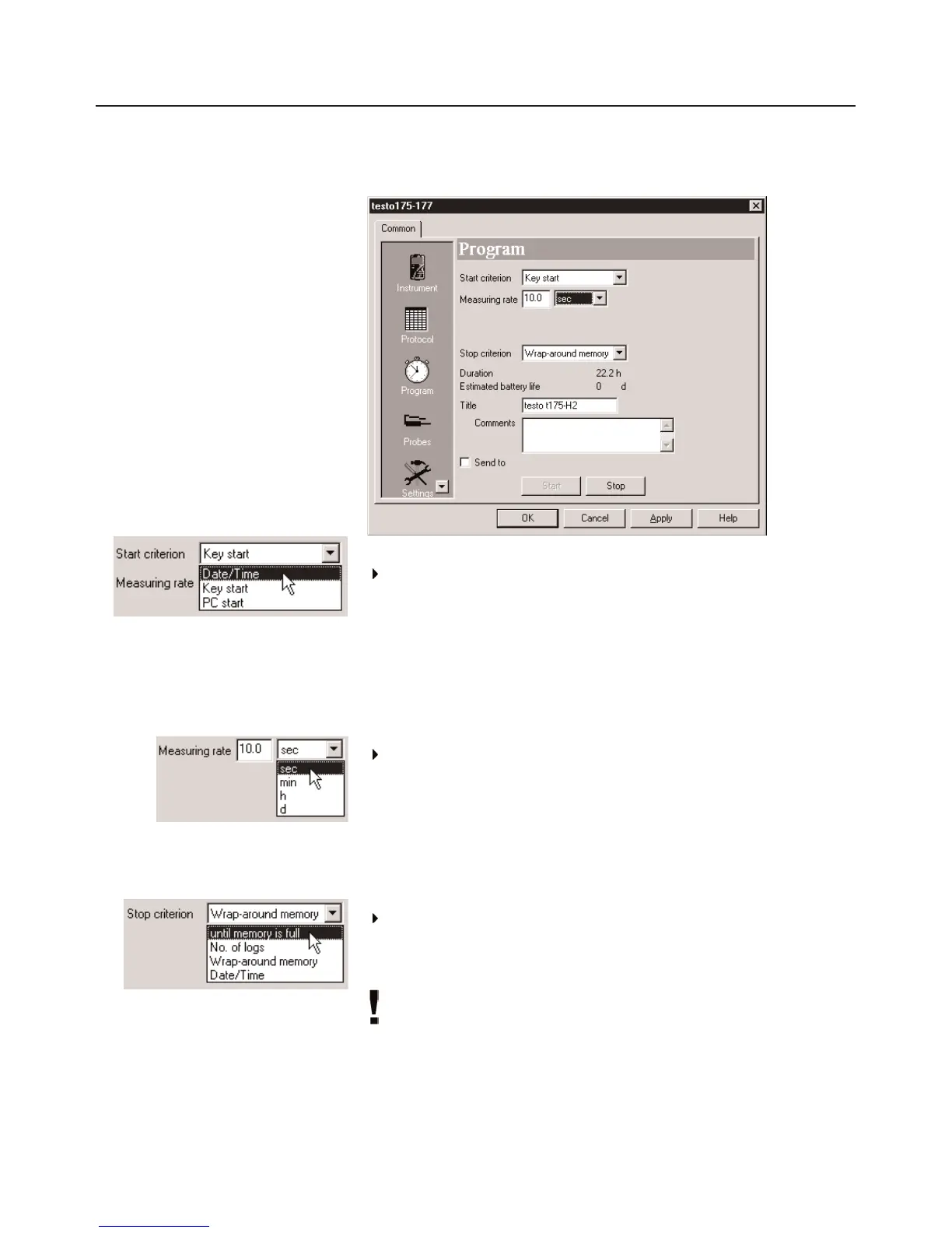 Select the required criterion to stop the measuring program.