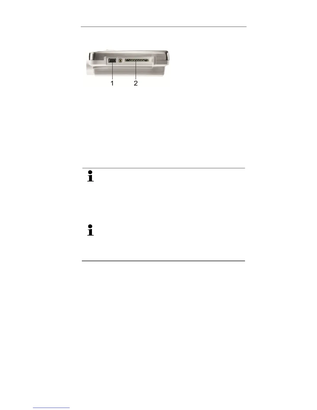 5. Plug the USB cable into the Mini USB port (1).