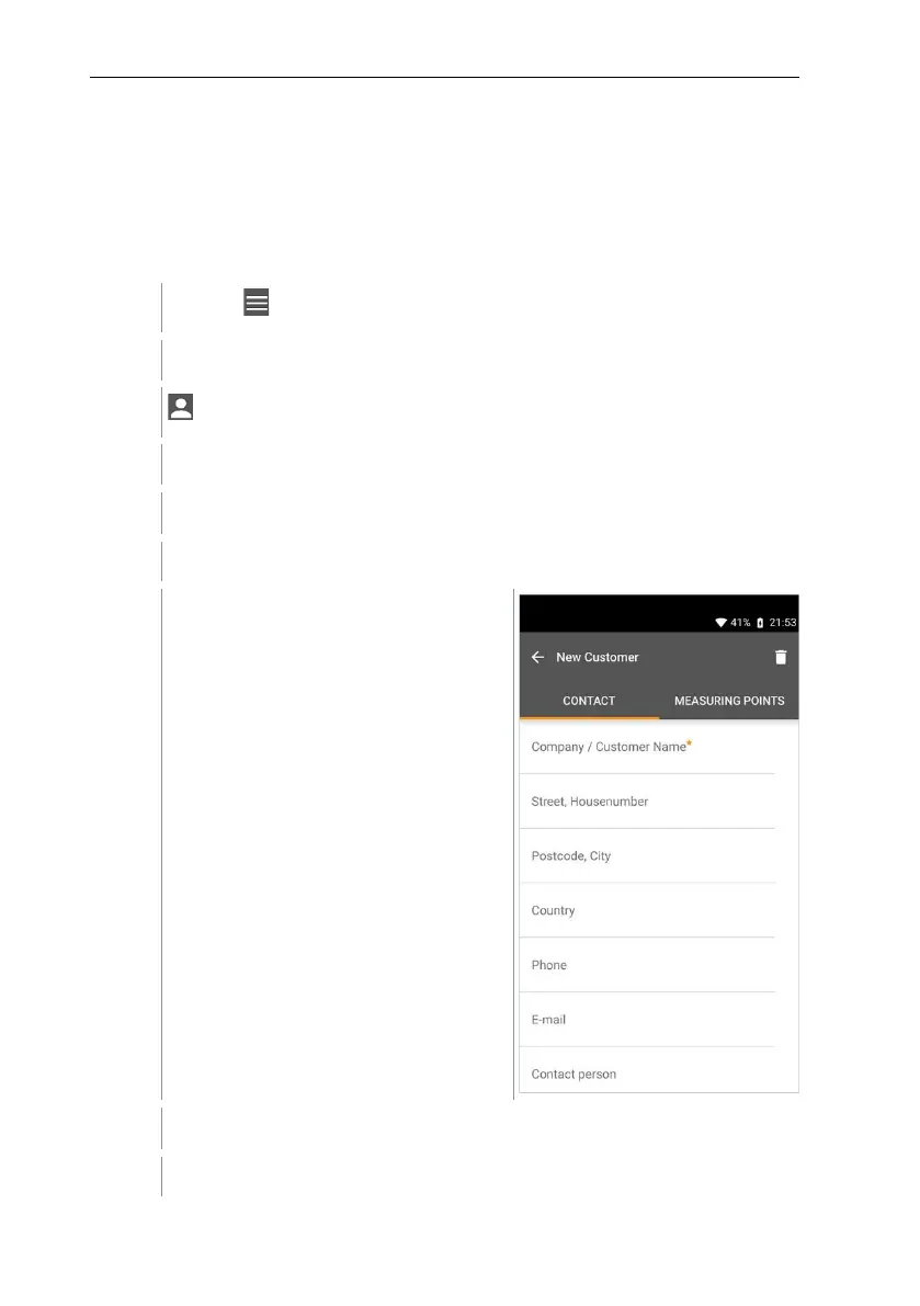 In the Customer menu, all customer and measuring site information can be